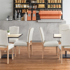 Are you looking for an elegant dining room chair set for your dining room? Look at these 2pcs kitchen chairs. Based on Parsons-style design, the 2pcs upholstered dining chairs adopt simple design and sleek lines, easily suited for nearly all home décor styles. You can place them in the kitchen, dining room, living room, café, etc. Furthermore, the fabric chair comes with a slightly arched top and shows bronze-finish studs on the edge for a classic look. Foam-padded backrest and cushion provide a smooth sitting experience. Solid rubberwood legs offer strong support for holding up to 300lb. These pack of 2 dining chairs provide endless accessibility and can quite flawlessly bring together the décor in the home.
