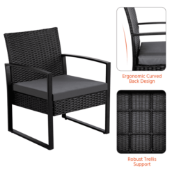SmileMart 3-Piece Bistro Set with Rattan Chairs for Outdoor Patio and Balcony, Black Cushions