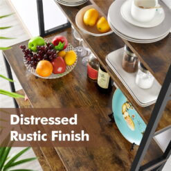 Keep all your kitchen necessities right at hand while effortlessly add a touch of rustic industrial appeal with this 5-tier baker’s rack. Crafted with a powder-coated metal frame in matte black finish, this piece uses CARB P2-Compliant laminated engineered wood tabletop and shelves. This utility storage shelf offers five multi-sized shelves to organize your go-to kitchen needs and smaller appliances like microwaves, coffee makers. The distressed brown color of this kitchen utility storage shelf can coordinate with a variety of styles, especially rustic barn-style and industrial design
