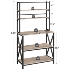 SmileMart 5-Tier Industrial Wood Baker’s Rack Storage Shelf for Kitchen, Gray