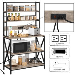 SmileMart 5-Tier Kitchen Baker’s Racks with Power Outlets for Kitchens, Gray