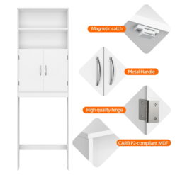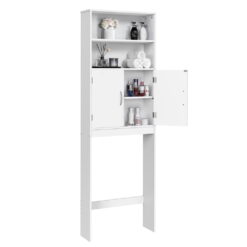 Between lotions and soaps, shaving creams and cotton swabs, we could all use a little extra storage space in the bathroom. With this over-the-toilet storage tower, you can instantly expand your storage without sacrificing valuable floor space. This wooden bathroom storage cabinet features one enclosed shelf with double doors, and two open shelves to place soap and other decorative items. Crafted of manufactured wood in a neutral finish, this charming design features two open cubby shelf which is perfect for storing candles, tissues, or rolled-up face cloths. Perfectly match any furniture in your house and make your home looking more elegant. Make use of wasted space with this space-saving storage unit.