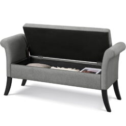 SmileMart Button Tufted Ottoman Storage Bench with Rolled Arms, Light Gray Fabric