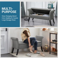Get yourself a versatile ottoman bench that helps you out with seasonal accessories, blankets, books, and pillows, it makes you enjoy the moment spent at home more than anything could do. Sturdy and durable composition boards and pine wood legs ensure the great bearing capacity of this storage bench. Breathable and skin-friendly fabric is long-wearing and soft to touch. The high-density foam serves elastic and firm to sit on. Large storage space is perfect for rooms with limited space. This storage bench can be used in the entryway, living room and entryway as a bench, sofa or ottoman, it is all up to you!