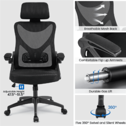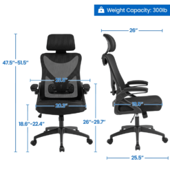 If you spend a lot of time in front of your desk, you’ll need such a comfortable and functional ergonomic office chair. High mesh back of the home office desk chair supports your entire back, neck and head, at the same time, bringing a cool using experience. A large, cushioned seat relieves fatigue from a long time sitting. Best of all, our high back mesh office chair is highly adaptable to your preferences. The seat, lumbar support and headrest can all be adjusted within a certain height range for maximum comfort. Armrests with foam padding are ideal for resting your arms and can be flipped up for space saving. The star base with five nylon castors allows 360° smooth and mute mobility. To add more fun, users can adjust the tilted angle of the backrest to enjoy rocking back and forth. Start a productive but relaxing day from now on!