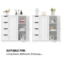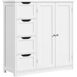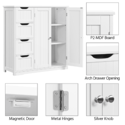 - SMILE MART Wooden Floor Storage Cabinet with 4 Drawers and Double Doors for Bathroom Entryway, White