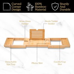 - Versatile Storage – Equipped with dedicated holders for wine glasses, books/tablets, phones, and candles/cups, our tray accommodates all your bath accessories.