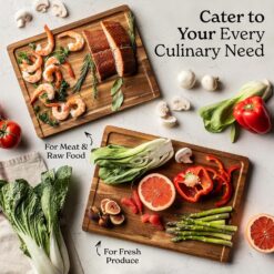- 2-Pack for Versatile Prep – Our 2-pack cutting board set provides two different sizes, giving you the flexibility to tackle various kitchen tasks. Whether chopping vegetables or slicing meats, these durable acacia boards meet all your culinary needs.