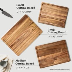 - 3-Pack for Comprehensive Coverage – Enjoy a complete kitchen solution with our 3-pack acacia cutting boards. With three different sizes, this set ensures you have the right board for every task, from small chopping jobs to larger meal preparations.