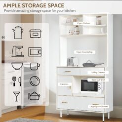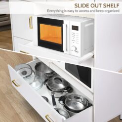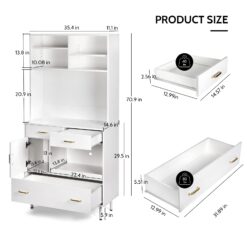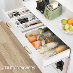 - VERSATILE & SIMPLE CABINET: Featured with closed cabinets, drawers, open shelves, slide-out shelf and open countertop to provide ample storage space for different items. This practical storage cabinet can be placed in living rooms, kitchens, or hallways to add a functional storage option.