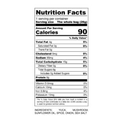 - Enjoy the whole bag guilt-free! The snack size bag of Snacklins contains a mere 90 calories, while each 1-ounce serving is just 100 calories. This means you can enjoy these delicious veggie chips without any guilt. Made from a tasty blend of yuca, mushrooms, and onions, Snacklins stands out with its exceptional texture—crispy, light, and melt-in-your-mouth, setting it apart from other vegetable snacks on the market.