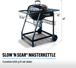 - Two Grills in One: All the characteristics of our original kettle grill but with superior features like a full grill cart and integrated table. The included Slow ‘N Sear Deluxe insert brings two-zone cooking to life for unrivaled searing power, paired with the Easy Spin 22” grate to access the cooking chamber and spin to and from the heat. Simply put, it delivers more BBQ power for sophisticated cooks and beginners alike.