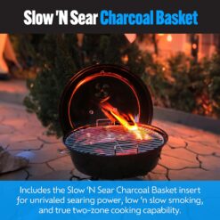 SnS Grills Slow ‘N Sear Travel Kettle, 2-Zone Cook Charcoal Basket and Easy Spin 18” Grate – Portable Charcoal Grill for BBQ Cooking – Travel Kettle 18”