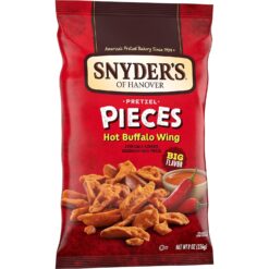 Snyder’s of Hanover Hot Buffalo Wing Pretzel Pieces are bursting with craveable flavor in every bite! Enjoy crunchy sourdough pretzels generously seasoned with the spiciness of hot sauce. You’ll love the crunch, hearty satisfaction, and bold flavor in every bite of Snyder’s Pretzel Pieces. Our pretzel pieces are the perfect snack to crunch on during game day or as a lunchtime side. Snyder’s of Hanover has been America’s Pretzel Bakery since 1909, and our pretzels give you that delicious crunch for the perfect snack! Made in a facility that does not process peanuts, Snyder’s pretzels are made from wholesome ingredients, kneaded, and oven-baked to seal in all the flavor. Snyder’s of Hanover pretzels have been shared across tables, across generations, and across the country, making us America’s favorite pretzel brand. There’s nothing like the spicy flavor of buffalo sauce, and with an 8-oz. bag, it’s easy to feed your craving any time.