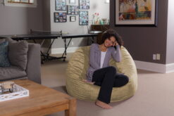One size fits all honestly! It is perfect for children and adults of any age. Our bean bag furniture offers great quality and unique design- built to last and lounge ready for all family members- even pets too! Even though we call them bean bag chairs, you won’t find any beans or Styrofoam pellets in our products. What we use is quite the opposite- only the softest and highest quality shredded foam providing you with an awesome lounging experience.