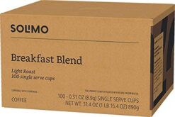 Solimo Light Roast Coffee Pods, Breakfast Blend, Compatible with Keurig 2.0 K-Cup Brewers, 100 Count