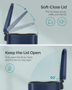 - [Soft Closure] The lid of the garbage can closes slowly, softly, and silently without making a loud clang