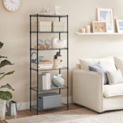 SONGMICS 6-Tier Metal Storage Shelves, Wire Shelving Unit, Adjustable Shelves, Garage Shelving, Kitchen, Living Room Storage Rack, Shelf Liners, 8 Hooks, Total Max. Load 264 lb, Black ULGR066B01