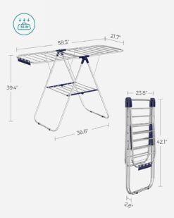 - Folding Design: Fold the laundry rack up and tuck it away when not in use.
