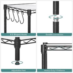 - [8 Hooks for Extra Storage] Did you forget where you put your oven gloves? Are your pans always left on the countertop? With the included 8 hooks, you can now hang them on the frame sides to keep your needs close at hand and free your countertop