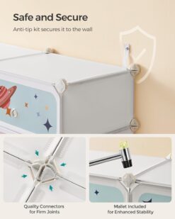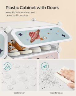 SONGMICS Kids’ Shoe Rack with Doors, 12-Slot Stackable Storage Organizer, Plastic Wardrobe, Toys, Books, Clothes, 12.2 x 31.9 x 41.7 Inches, Cloud White ULPC907W01