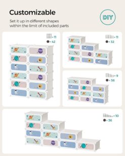 - [Easy to Assemble & Customizable] To have your kids enjoy this modular shoe rack as soon as possible, we offer a simple structure, clear instructions, and a rubber mallet for easy assembly; the DIY design allows you to set it up in 2 ways to fit the space
