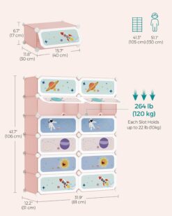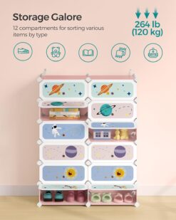 - [What You Get] A children’s shoe rack with stellar-theme patterns, 12 roomy, 11.8” x 15.7” x 6.7” storage shelves, and an organizing solution that prevents kids’ shoes from getting lost around the house