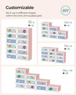 - [Easy to Assemble & Customizable] To have your kids enjoy this modular shoe rack as soon as possible, we offer a simple structure, clear instructions, and a rubber mallet for easy assembly; the DIY design allows you to set it up in 2 ways to fit the space