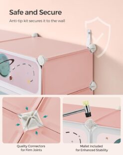 SONGMICS Kids’ Shoe Rack with Doors, 12-Slot Stackable Storage Organizer, Plastic Wardrobe, Toys, Books, Clothes, 12.2 x 31.9 x 41.7 Inches, Jelly Pink ULPC907R01