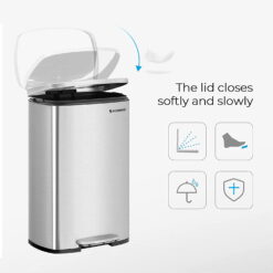 - [Soft Closure] The lid of the garbage can closes slowly, softly, and silently without making a loud clang