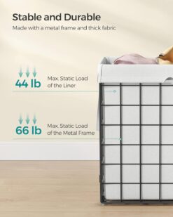 - [Select Materials, High Sturdiness] The 200 g/m² fabric liner is very sturdy and can hold up to 44 lb, while the wire basket can hold up to 66 lb. Feel free to fill the laundry basket to the brim with all your dirty laundry