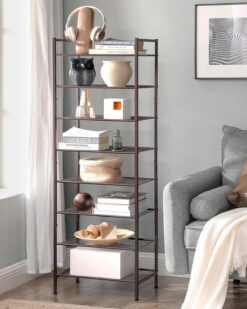 SONGMICS Narrow Shoe Rack, Sturdy 8 Tier Metal Tall Shoe Rack Shelf, Slim Shoe Storage Organizer for Closet Entryway Small Spaces, Vertical Shoe Stand Tower for 18 Pairs Shoes, Easy Assembly, Bronze