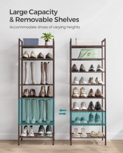- [Small Area, Large Capacity] This SONGMICS tall shoe rack has the perfect compact size for a small space. At just 1.47 sq. ft, it can hold 16-24 pairs of shoes, and even can be as a storage shelf for bags and toys