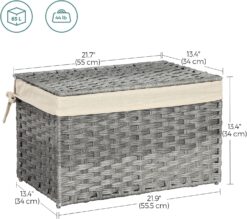 SONGMICS Storage Basket with Lid, 17.2 Gallon (65L) Storage Bin, Woven Blanket Storage Basket with Handles, Foldable, Removable Liner, Metal Frame, for Bedroom, Laundry Room, Gray URST56WG