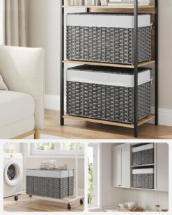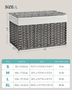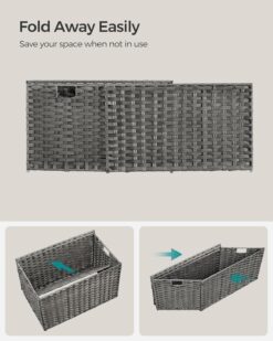 - [Waterproof, Ventilated & Sturdy] The breathable, waterproof PP rattan is well-ventilated and helps your clothes stay dry. The sturdy metal frame makes this woven basket robust enough to hold up to 55 lb