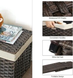 - [Waterproof, Ventilated & Sturdy] The breathable, waterproof PP rattan is well-ventilated and helps your clothes stay dry. The sturdy metal frame makes this woven basket robust enough to hold up to 66 lb