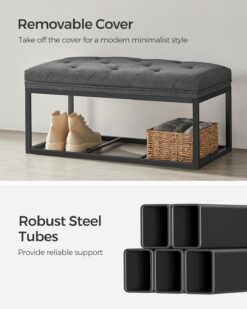 - [Stable, Strong, Sturdy] Crafted with a robust steel frame, quality MDF top, and premium linen-look fabric, this bench with storage boasts long-lasting stability and strength