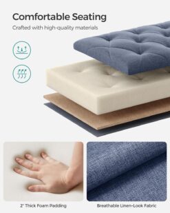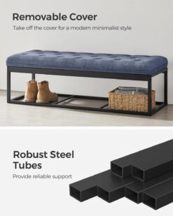 - [Stable, Strong, Sturdy] Crafted with a robust steel frame, quality MDF top, and premium linen-look fabric, this bench with storage boasts long-lasting stability and strength