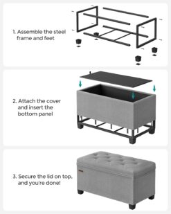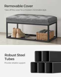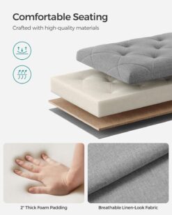 - [Stable, Strong, Sturdy] Crafted with a robust steel frame, quality MDF top, and premium linen-look fabric, this bench with storage boasts long-lasting stability and strength