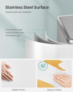 - [Strong yet Soft] The rigid stainless steel body of this garbage can withstands long-lasting use; the soft-close lid ensures the environment remains peaceful, with no loud slamming to be heard