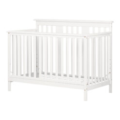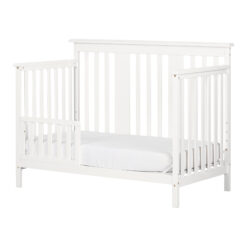 South Shore Little Smileys Modern Baby Crib – Adjustable Height with Toddler Rail White