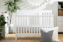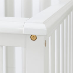 Place the original Little Smileys bed center stage in the nursery, and it’ll steal the show. Position it against the wall, so the tallest side works as a headboard. Attractive details like the moldings and the mix of narrow and wider bars give it lots of character.