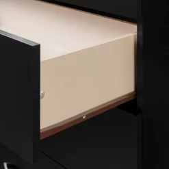 This bedroom furniture collection was designed just for tighter spaces! Featuring 5 practical drawers with metal handles, the dresser provides plenty of room for clothes, linens or general storage. The drawer slides are made of metal and include dampers and catches, creating a secure environment for babies and kids.