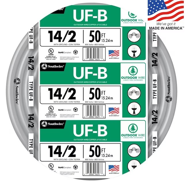 Southwire 13054222 50-Feet 14 / 2 Solid UF-B Wire W/G ( By-the-roll )