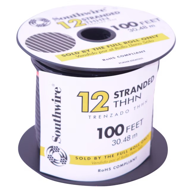 Southwire 22964184 100-Feet 12 -AWG Black Stranded Copper THHN wire ( By-the-roll )