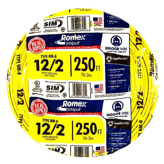 Southwire 28828269 250-Feet 12 / 2 / Romex SIMpull Solid Indoor CU NM-B W/G Individual pack ( By-the-roll )