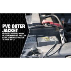 PVC outer-jacket that resists water, oil, chemicals, abrasion and can handle temperatures up to 185 ° F (85 ° C)