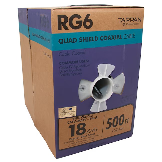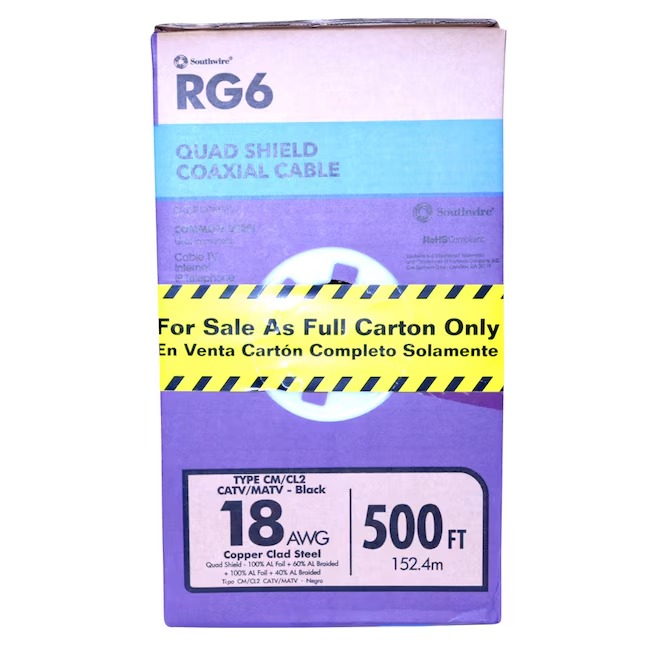 Southwire 56918441 500-ft 18 RG6-Quad Shield Black Coaxial Cable ( By-the-roll )
