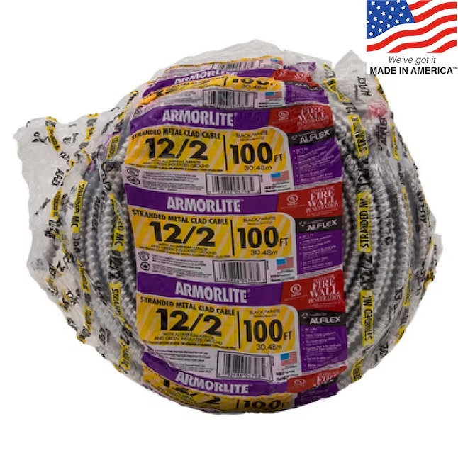 Southwire 61023123 Armorlite 100-Feet 12 / 2 Solid Aluminum BX/AC Armored Cable