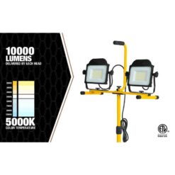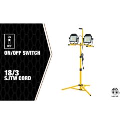 Southwire’s ratcheting LED lights include a smooth, rotating 360-degree head that points light in any direction. Not only can the 2 lights can be removed entirely from the stand, but the stand can be adjusted both in height and direction by 180 degrees while the tripod can collapse with its easy 2-step process for convenient storage and transportation. The LED lights both exert 10,000 Lumens of light for a total of 20,000 Lumens, exerting the ideal brightness for a variety of indoor and outdoor settings.